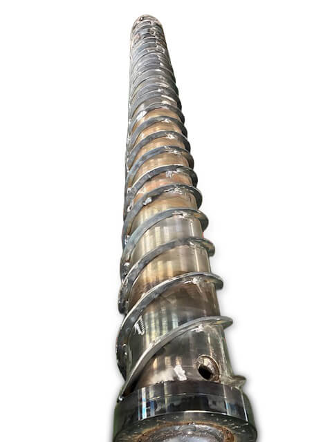 パイプ外周に細幅の金属板を、ねじりながら一定ピッチで巻き付けることで、搬送・排出・攪拌などの機能を持たせています。