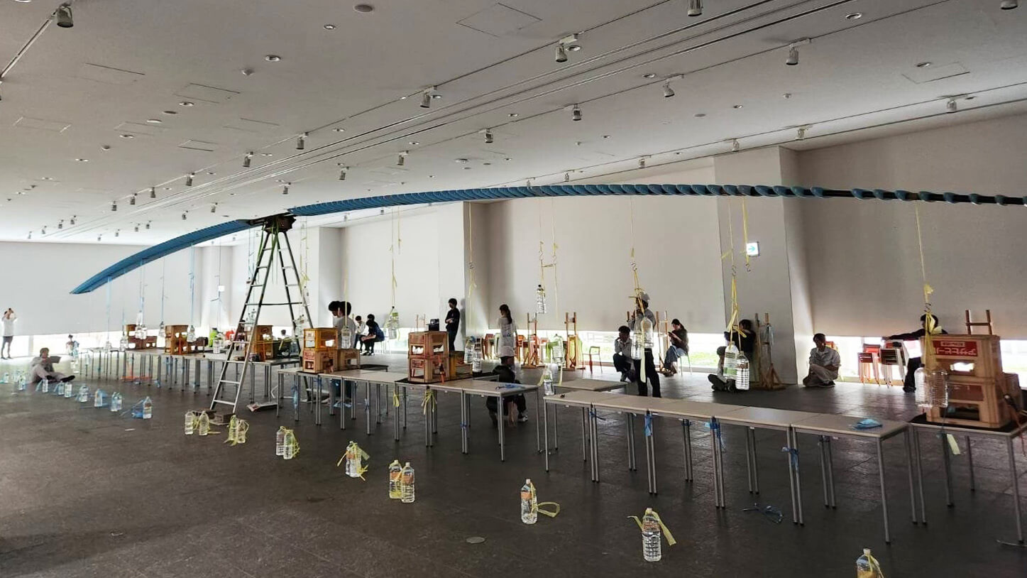 本画像は、鳥人間コンテストに出場する日本大学生産工学部の学生たちが、琵琶湖にて機体の飛行テストを行っている様子です。